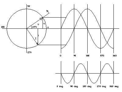 Hier zijn 2 signalen uitgezet met pijlen U en I, die 90° in fase verschoven zijn.